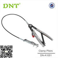 Reinforced long reach tool designed to get to awkwardly positioned tag type hose clips